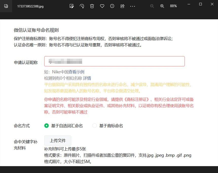 小程序微信认证时,如果所填写的名称提示如下截图中的文字,是不是意味着必须要提供这些证件才能审核通过