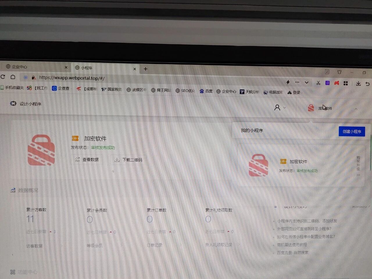 我们公司叫成都大青科技有限公司,做了小程序的推广,使用的是“加密软件”四个字作为关键词来搜索,但是现在在小程序里无法搜索到