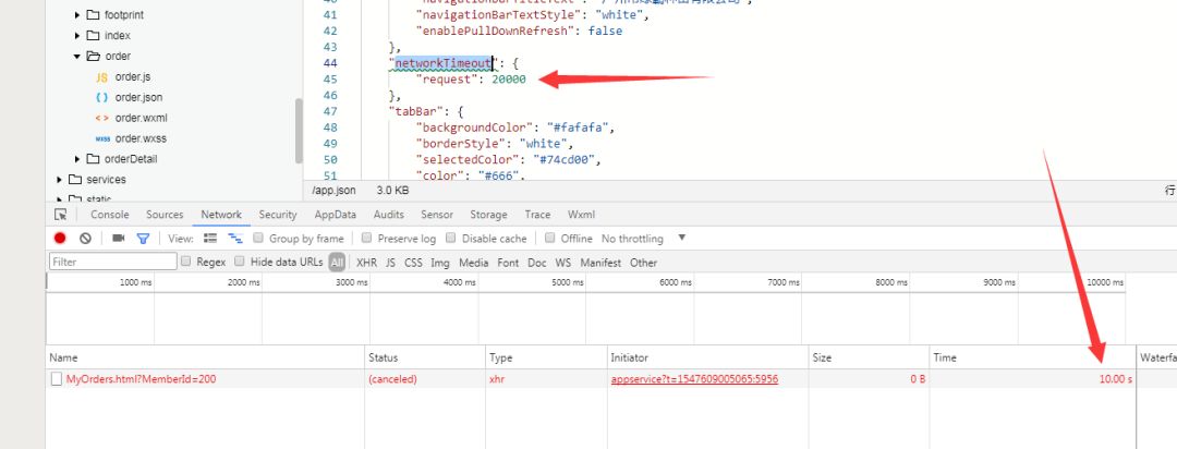断开手机WiFi和蜂窝网络,loading不消失,计时为60s