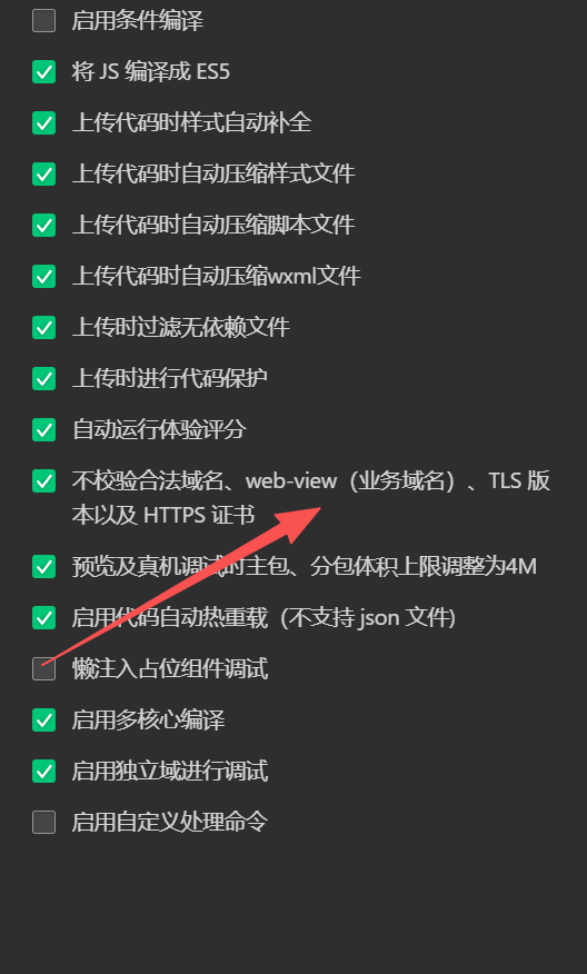 老师们好~做一个小程序连接后台自建服务器数据库的实验,勾选了这些“不校验”,为什么还是会报这个错,开发者工具连接正常,真机调试就显示网络连接异常