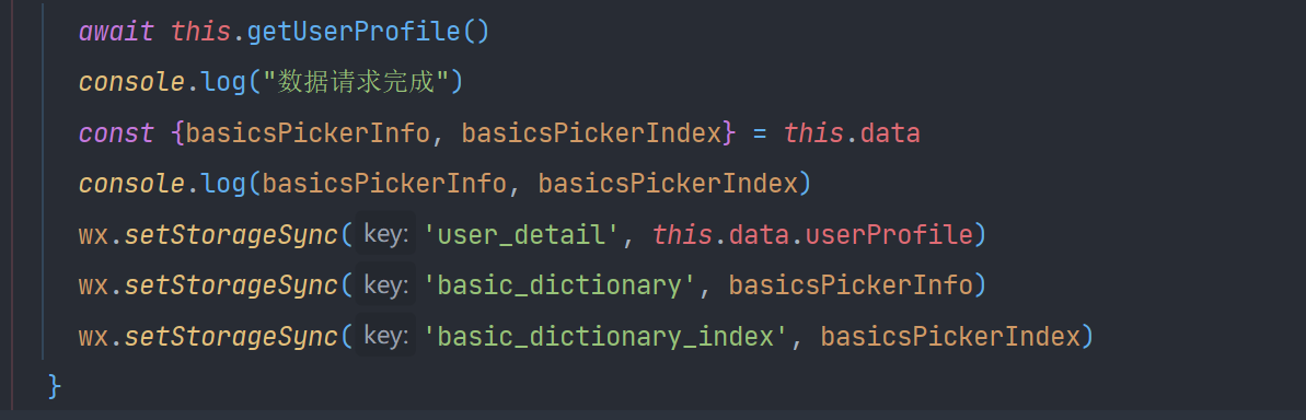我在设置缓存数据时,明明basicsPickerInfo和basicsPickerInfo都已经发生了变化。 可是缓存中设置的依然是data中的初始数据,但是user_detail设置成功了