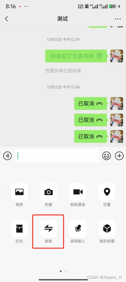 补充:试了一下,这个弹窗上的所有功能都不可点(包括相册、视频通话和位置等)