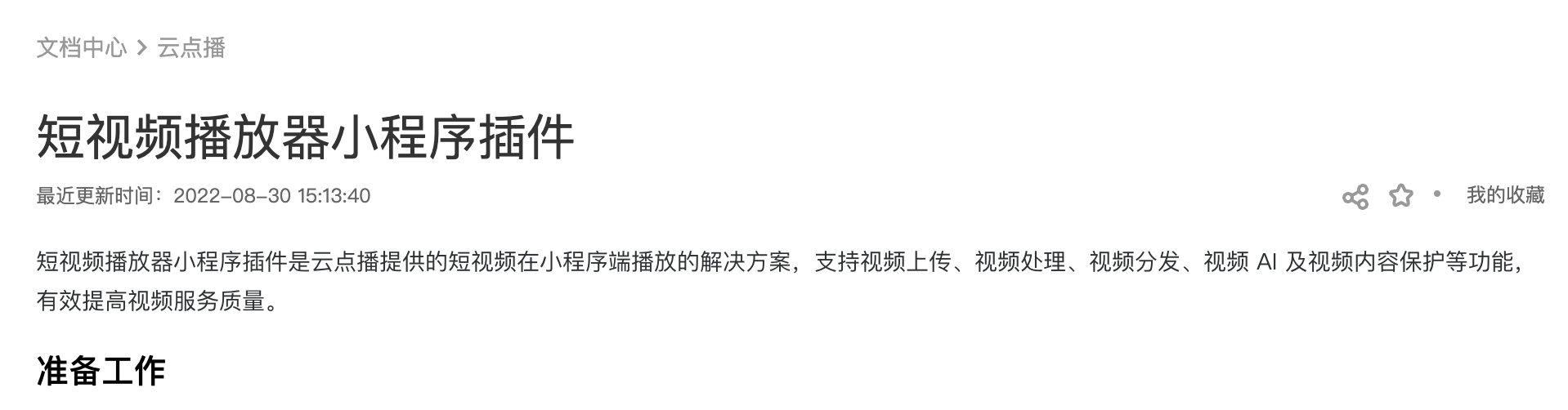 视频的话其实可以用video组件播放,或者是一些插件,这里有一个云点播提供的「短视频播放器小程序插件」可以看下的:https://cloud.tencent.com/document/product/266/36849 。