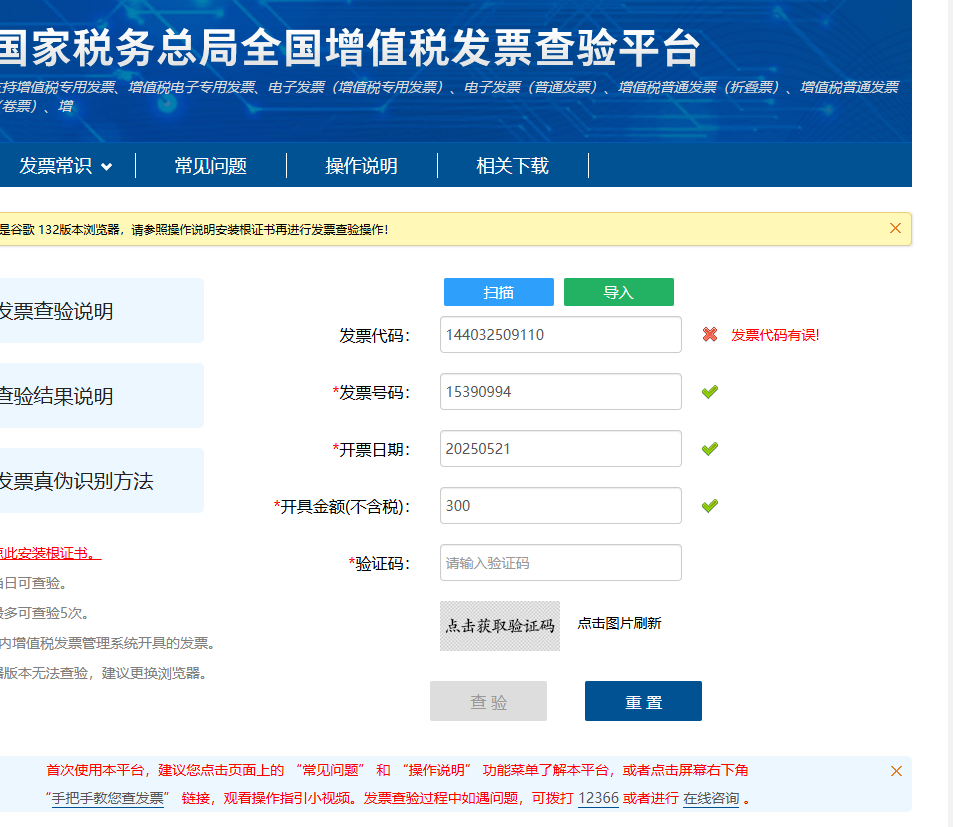 电子普通发票在国家税务总局发票查验平台查验过程中显示发票代码错误。