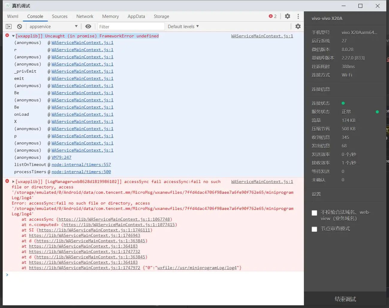 真机调试vivo手机报错,但是手机正常使用,换别的手机就没有报错。如图