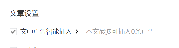 可目前的情况是:智能插入广告后面提示,文中可插入广告的条数为0。但是由于之前设置了自动插入,前面的小勾还是有的。