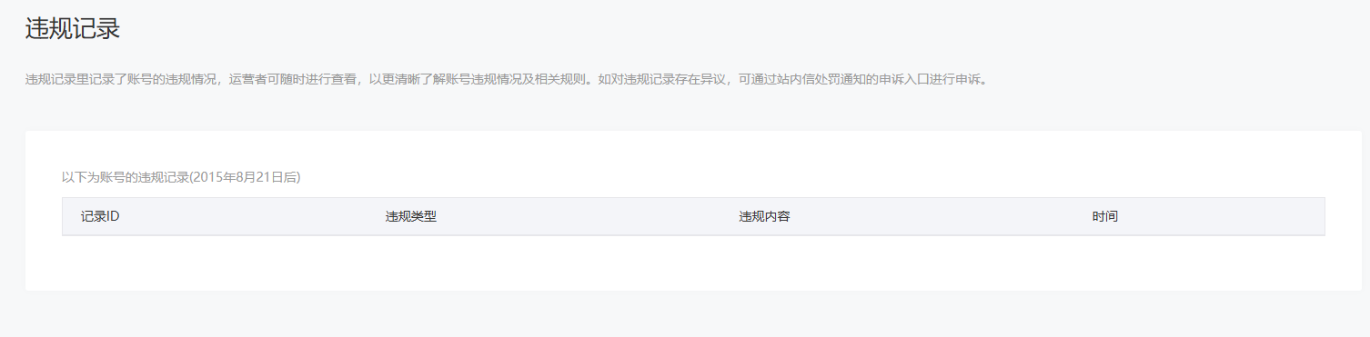 违规记录是空的,然后说我涉嫌违规,关键是这个公众号是我用来测试开发的,从来没有正式上线过,也没有发布什么实质性功能……
