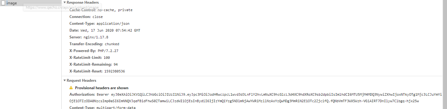 wx.request 可以请求成功, wx.uploadFile 就Provisional headers are shown