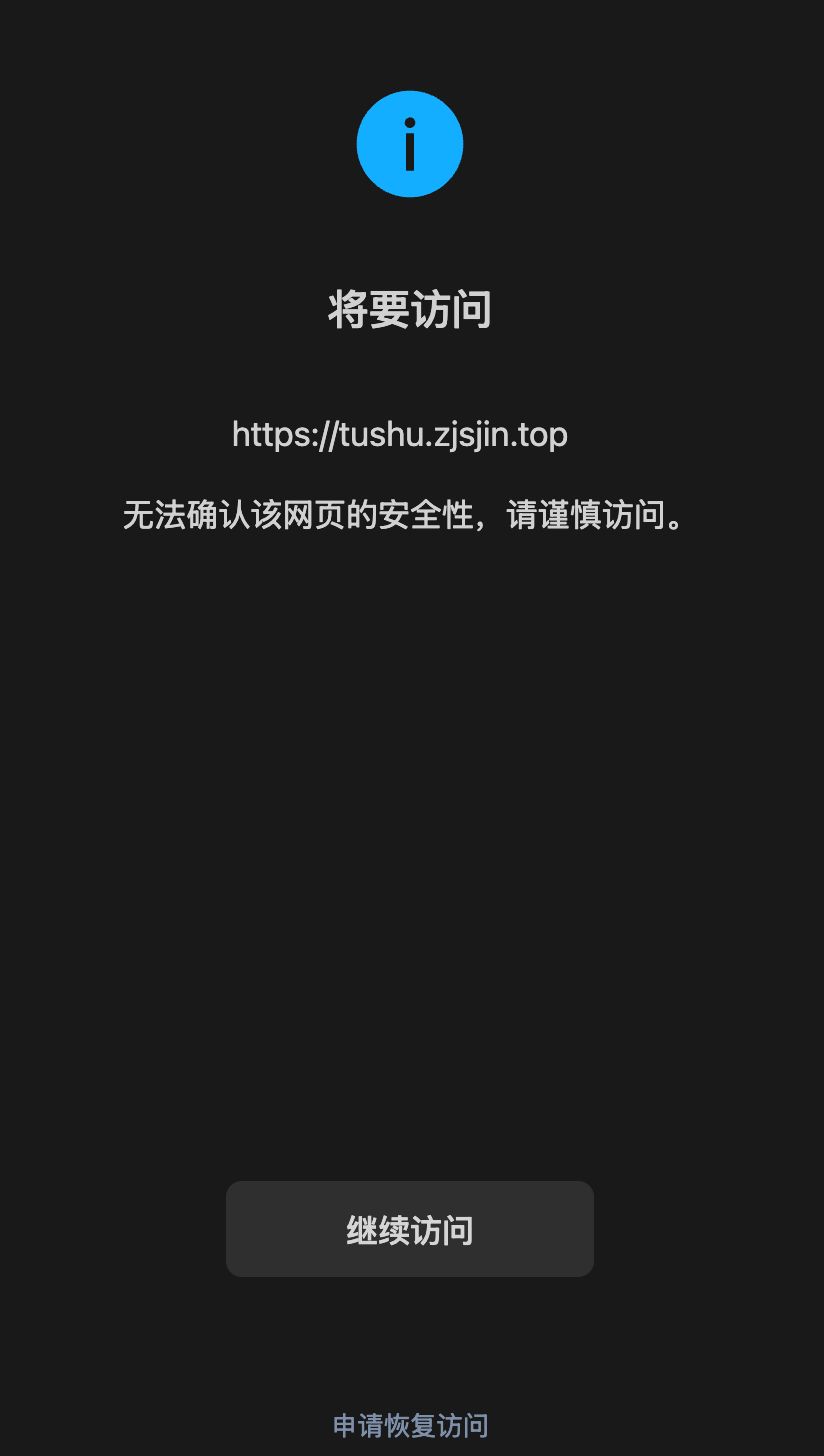 https://tushu.zjsjin.top/,一个AI训练活动落地页,域名并未违规,但是在微信内被拦截,无法直接访问,需要能恢复直接访问