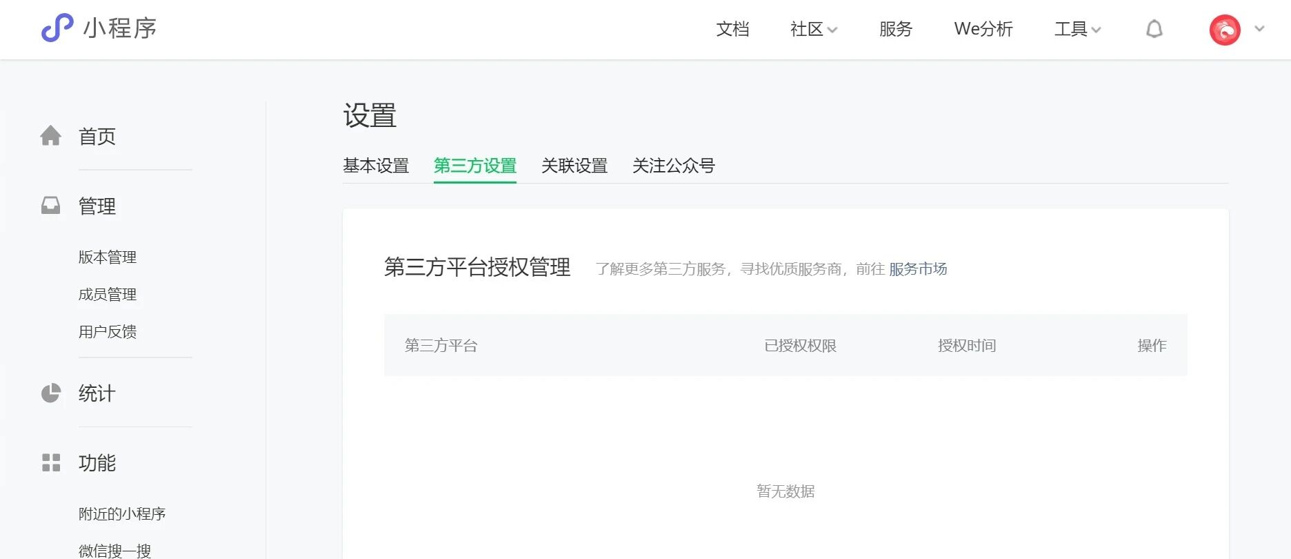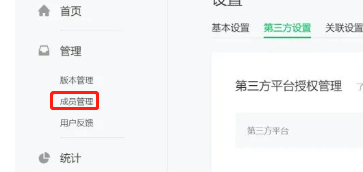 成员管理内查看和添加开发者,设置 — 基本设置内可查看appid等信息