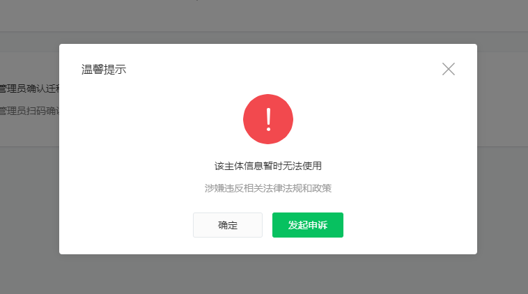 小程序——设置——小程序迁移——申请——【提示:该主体信息暂时无法使用