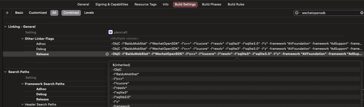 打开.xcworkspace文件(不是.xcodeproj),这是Pods安装后应该使用的项目文件。在Xcode中,检查Pods项目(通常在左侧项目导航器的底部)是否包含WechatOpenSDK-XCFramework。确保Pods项目中的Build Phases -> Link Binary with Libraries包含了正确的库文件。