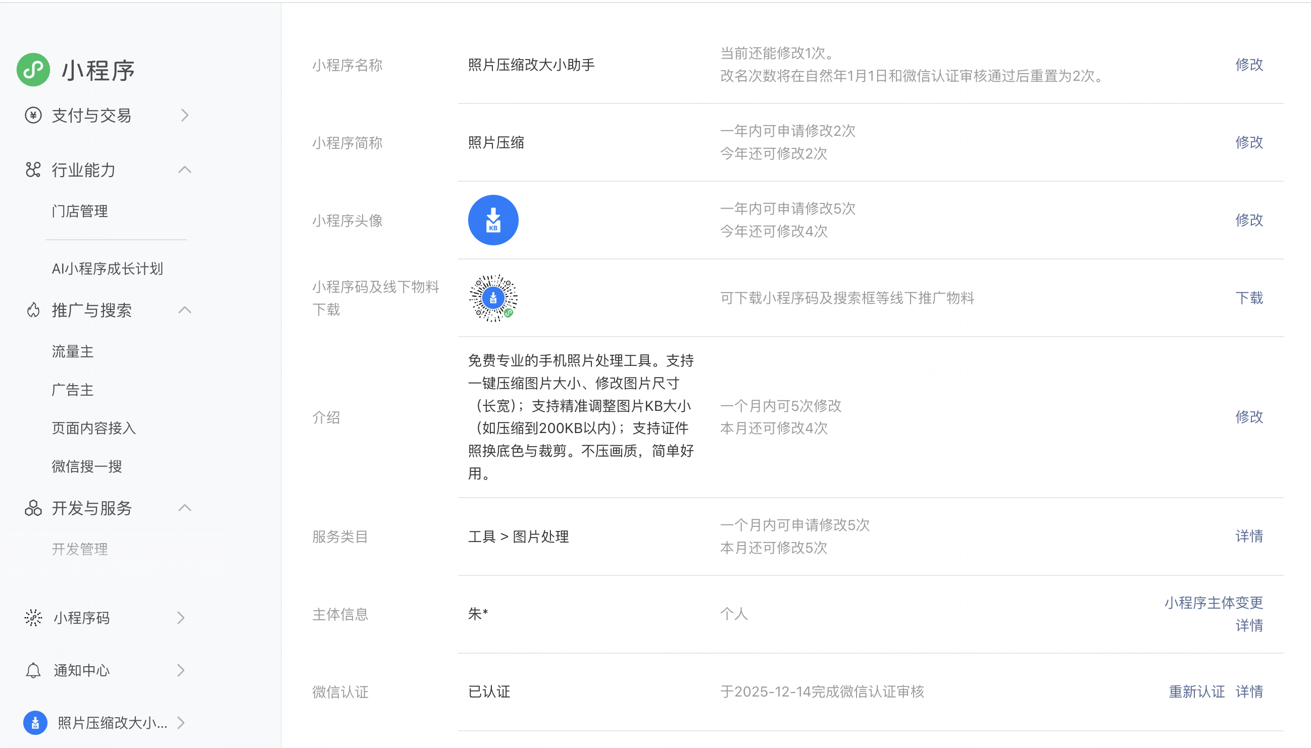 - 当前唯一服务类目:工具 > 图片处理