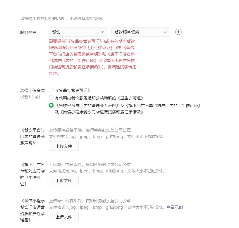 已经提交这3个资质文档《餐饮平台与门店的管理关系声明》及《旗下门店名单和对应门店的卫生许可证》及《微信小程序餐饮门店运营资质和责任承诺函》。但是还是审核不通过。