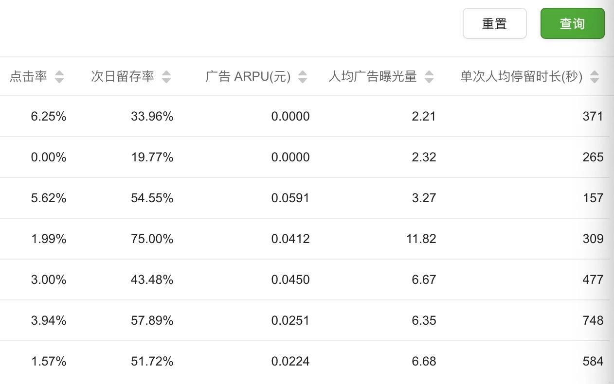 小游戏广告曝光情况: