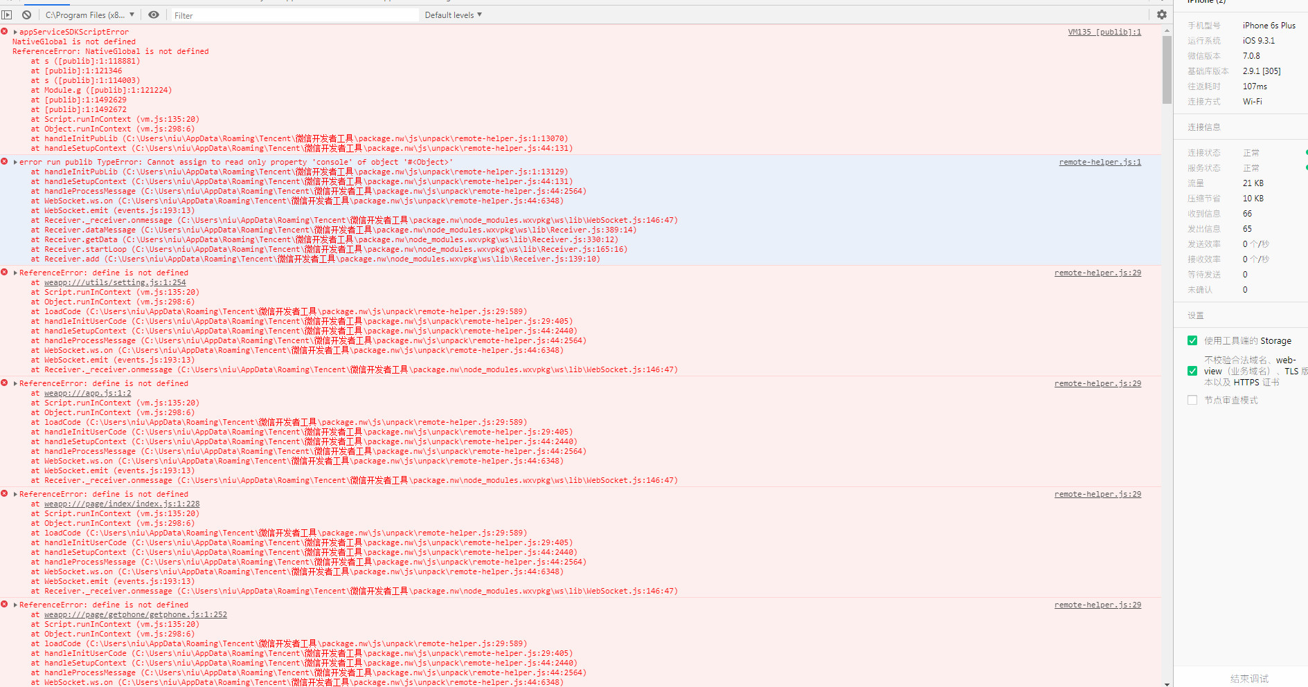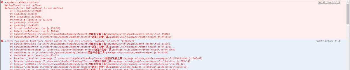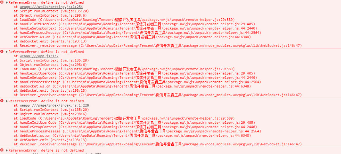用户打开小程序后,进入页面报了一堆错误,感觉像是什么东西不兼容