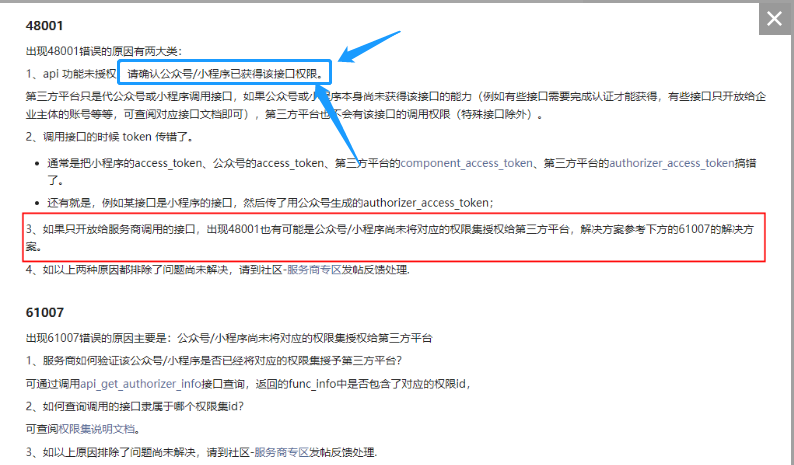 [ "errcode" => 48001, "errmsg" => "api unauthorized rid: 6306d465-3e0f6fe3-7350744f", ]