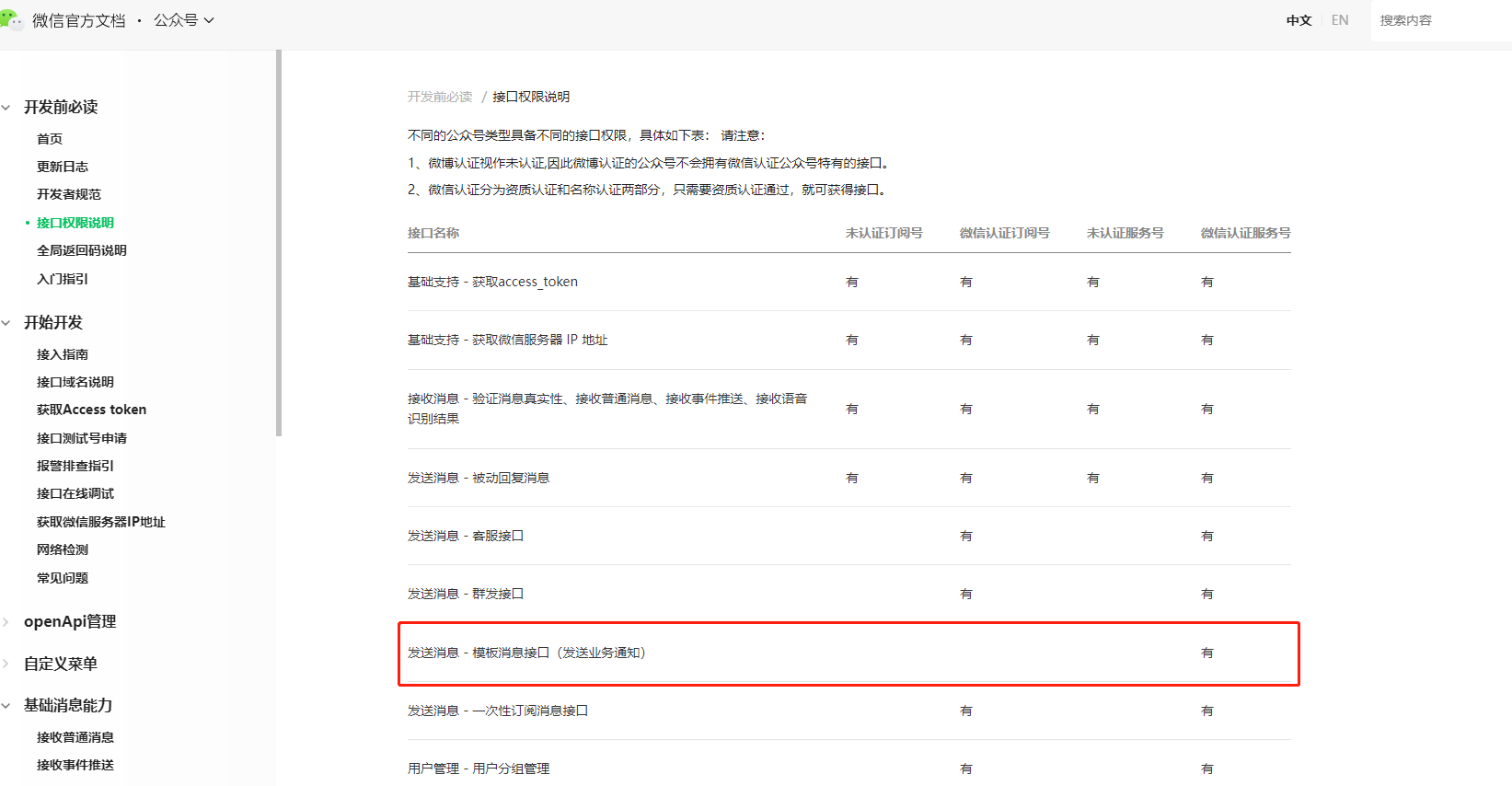 https://developers.weixin.qq.com/doc/offiaccount/Getting_Started/Explanation_of_interface_privileges.html
