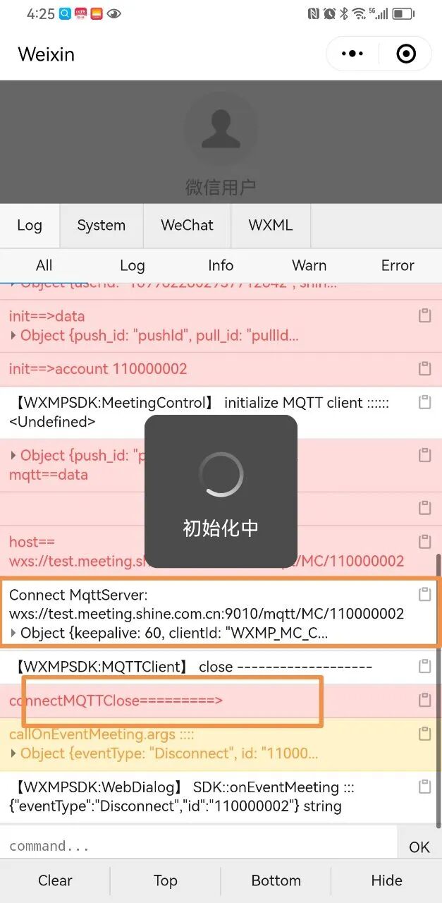 地址:wxs://test.meeting.shine.com.cn:9010/mqtt/