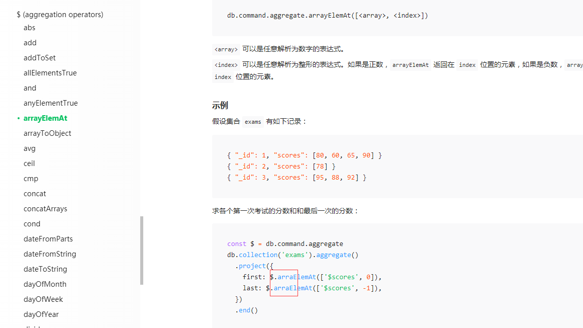 https://developers.weixin.qq.com/miniprogram/dev/wxcloud/reference-server-api/database/aggregation/operators/arrayElemAt.html