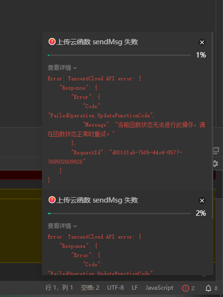 "Message": "当前函数状态无法进行此操作,请在函数状态正常时重试。"