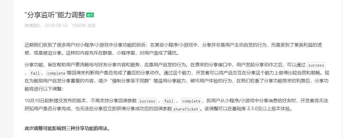 官方文档 https://developers.weixin.qq.com/community/develop/doc/0000447a5b431807af57249a551408