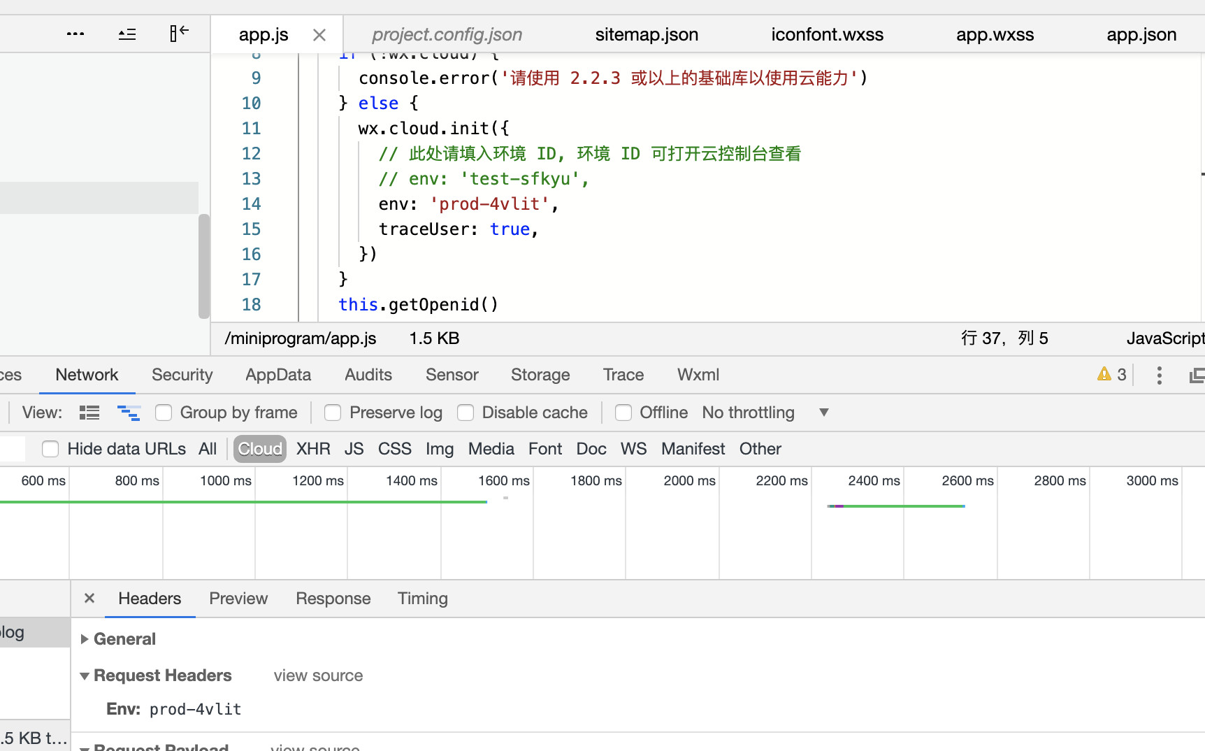 已经在app.js中切换了云环境,请求头里也看到切换成新的云环境了