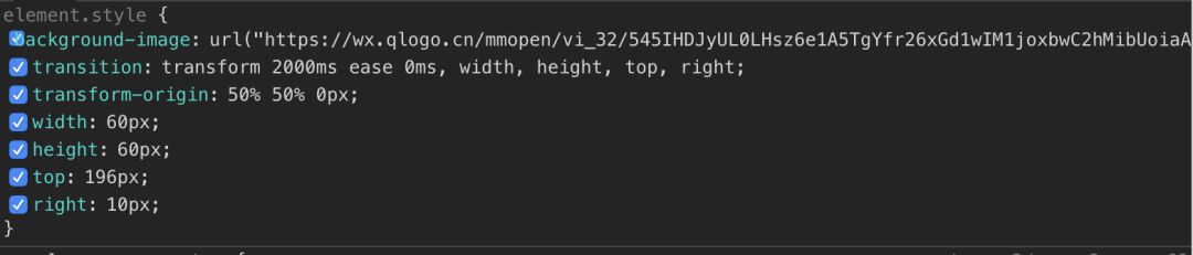 transition的值应该为: transform 2000ms ease 0ms, width 2000ms ease 0ms, height 2000ms ease 0ms, top 2000ms ease 0ms, right 2000ms ease 0ms;