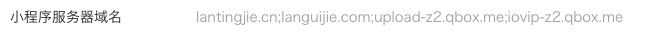 "{\"errcode\":0,\"errmsg\":\"ok\",\"requestdomain\":[\"https:\\/\\/lantingjie.cn\",\"https:\\/\\/languijie.com\"],\"wsrequestdomain\":[],\"uploaddomain\":[\"https:\\/\\/upload-z2.qbox.me\"],\"downloaddomain\":[\"https:\\/\\/iovip-z2.qbox.me\"]}"