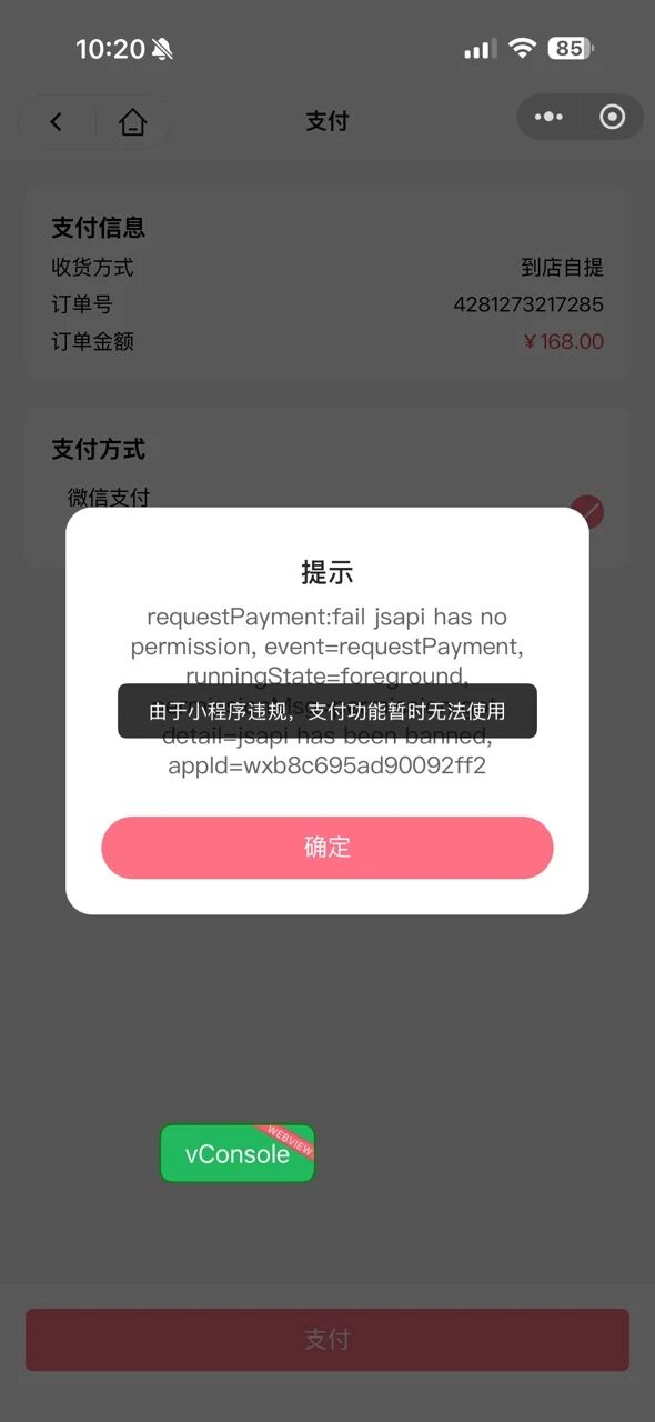 你好,我的小程序(AppID: 你的appid)在调用支付时报错“由于小程序违规,支付功能暂时无法使用”,但后台违规记录为空。