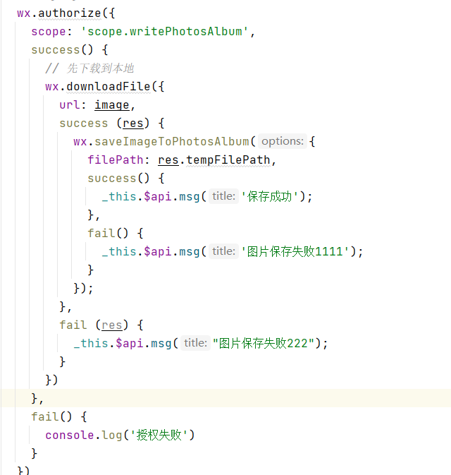 在真机调试和预览开启调试下不报错 正式环境和预览关闭会报错"图片保存失败222"