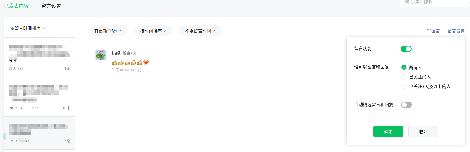 自动精选留言和回复怎么自动打开了?