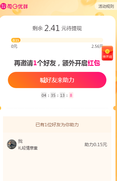 分享但需要等待好友点击并双方共同获利不是,我记得有这一条