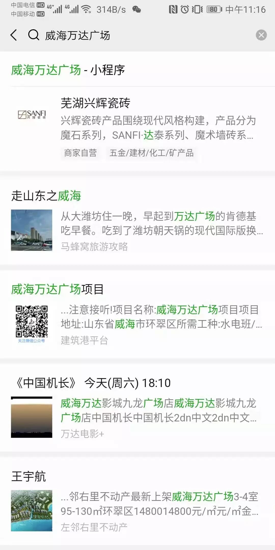楼上的朋友不是的哦!我们这边搜索“”威海万达广场“” 也能找到你的哦