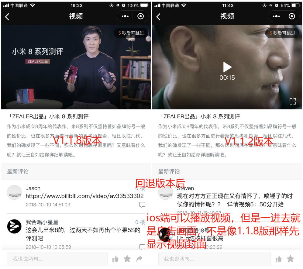 嗯,国庆节前,也是同样的程序代码。都是OK的。 6.7.3,更新以后,一直在缓冲。 开始以为是网络问题,后来测试到公众号,发现 不对啊。两边的视频地址一模一样。在小程序真机,就GG。所以很尴尬。 关注了2周了,本来以为这周就更新的,貌似还要继续等? 是因为 video 这个标签问题?