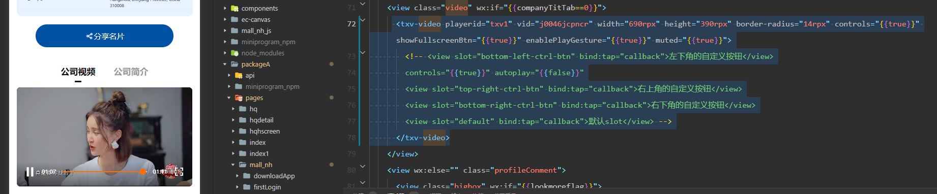 <txv-video playerid="txv1" vid="j0046jcpncr" width="690rpx" height="390rpx" border-radius="14rpx" controls="{{true}}" showFullscreenBtn="{{true}}" enablePlayGesture="{{true}}" muted="{{true}}">