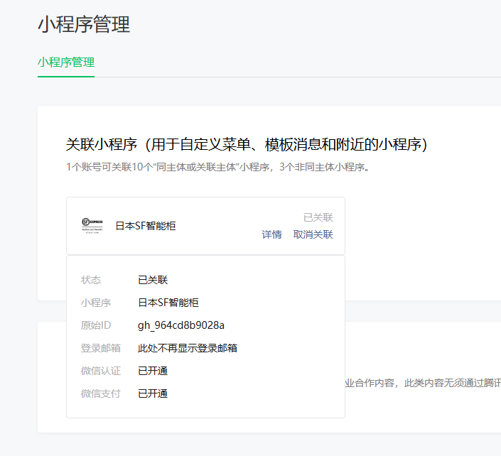 确认小程序和公众号的关联,确认是否为APPID以及是否正确,贴出来看看(关联截图和小程序APPID)