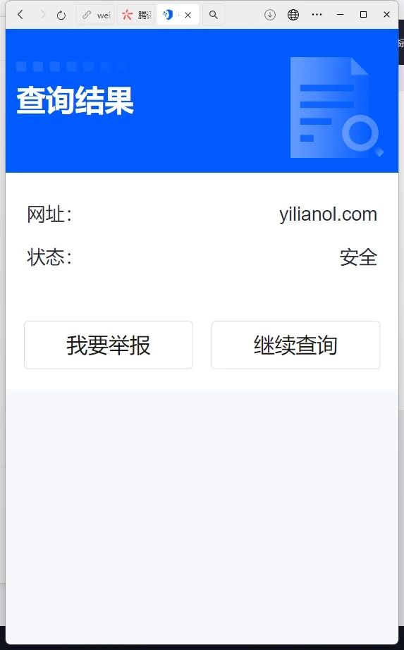 也使用了「腾讯安全-网址安全中心[6]」对网站域名进行检测,显示的是域名安全,但是就是显示已停止访问,这个大大影响了我,麻烦审核大人解封一下,恢复一下微信内可直接访问该域名服务谢谢。