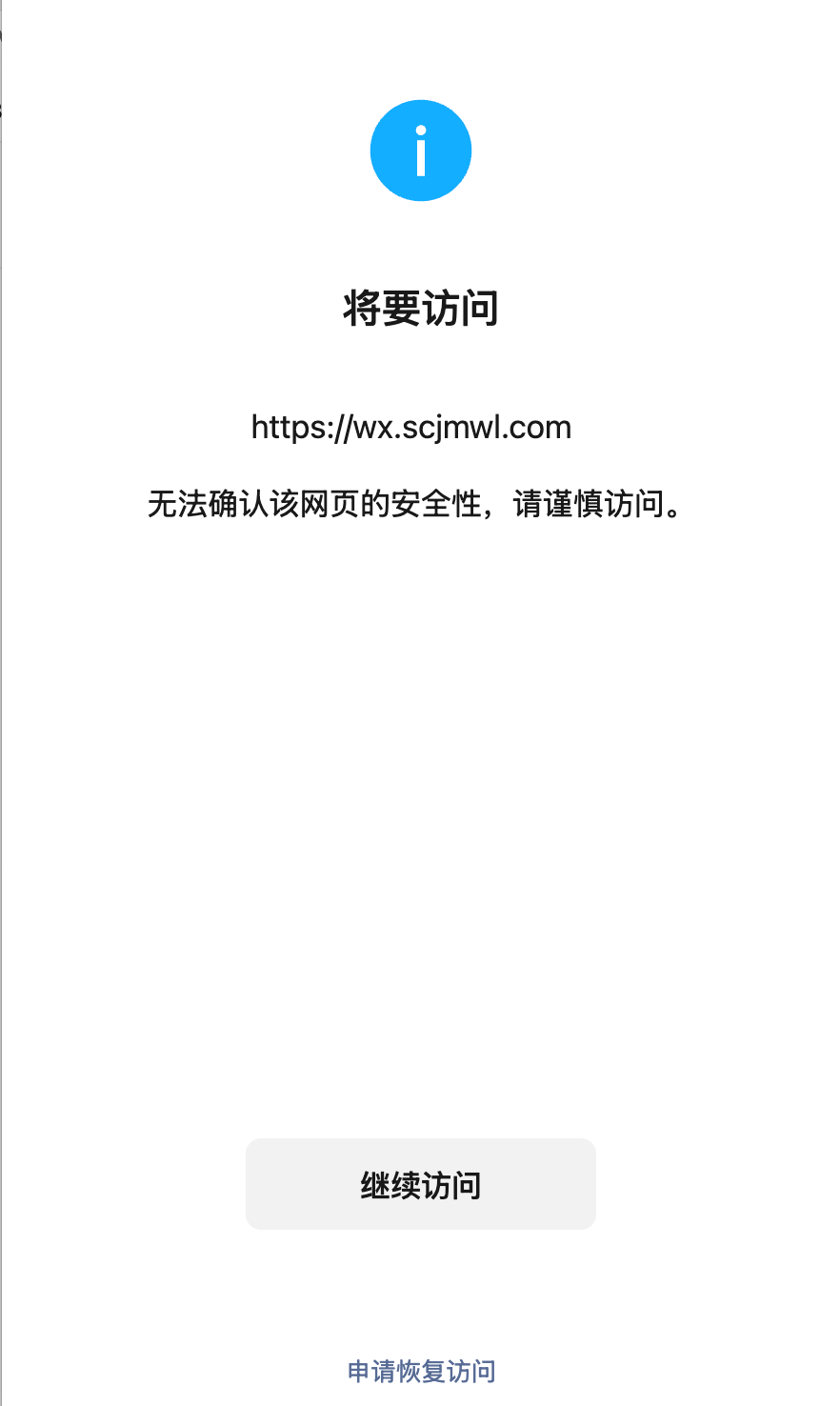 https://wx.scjmwl.com,域名并未违规,但是在微信内无法直接访问,需要能恢复直接访问