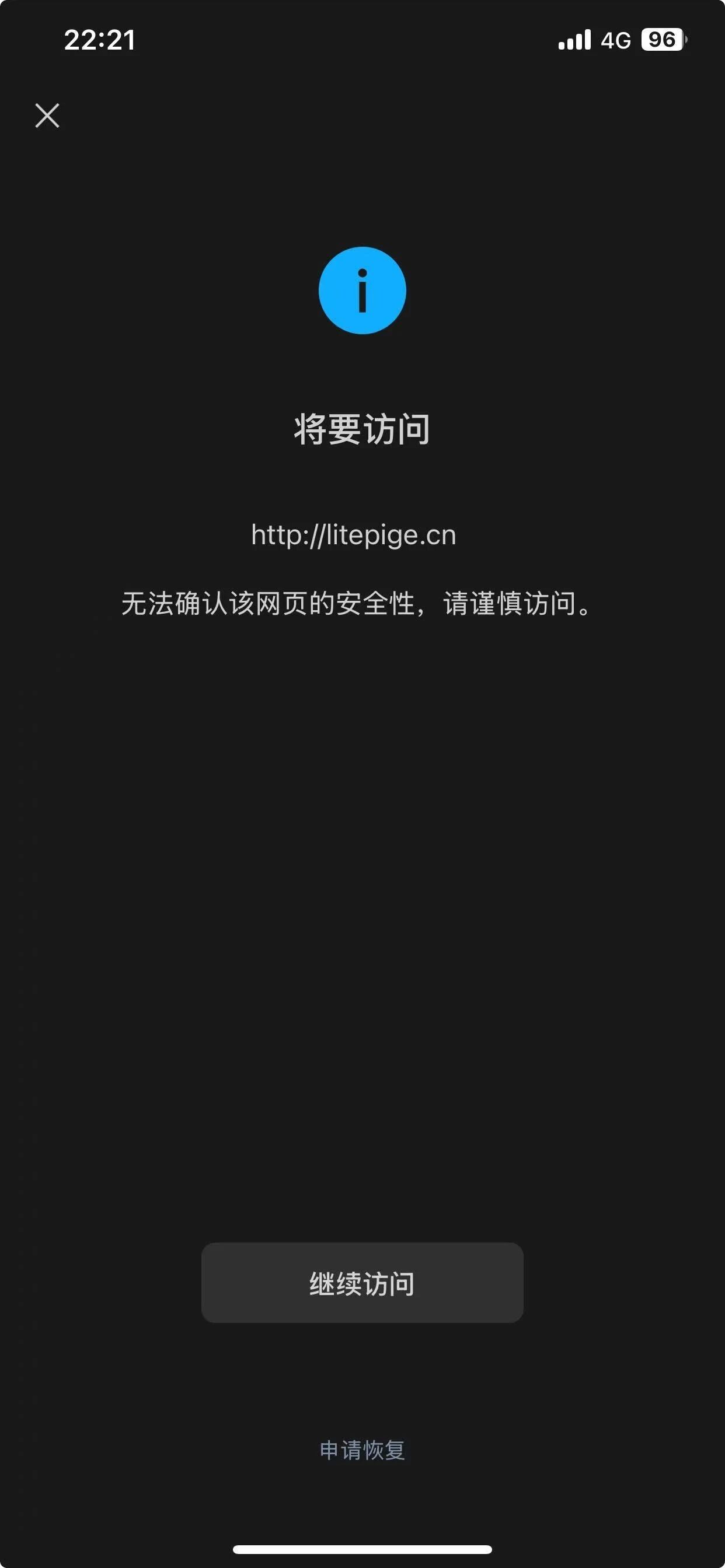 域名:http://litepige.cn 已在工信部备案,微信访问提示: