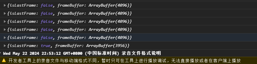 我的代码采集到上述数据帧后,传至服务端进行合并,合并成一个PCM文件。在某站PCM文件转MP3文件播放的时候发现播放得不对。