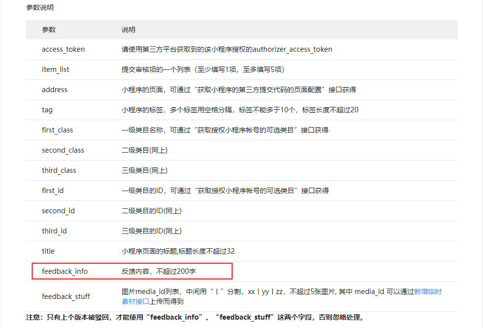 要提供额外信息给微信方,是否是使用 feedback_info字段?