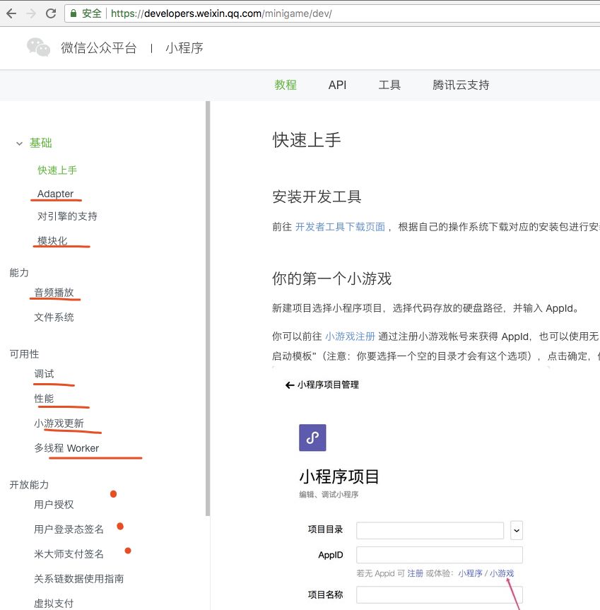 小游戏教程链接:https://developers.weixin.qq.com/minigame/dev/