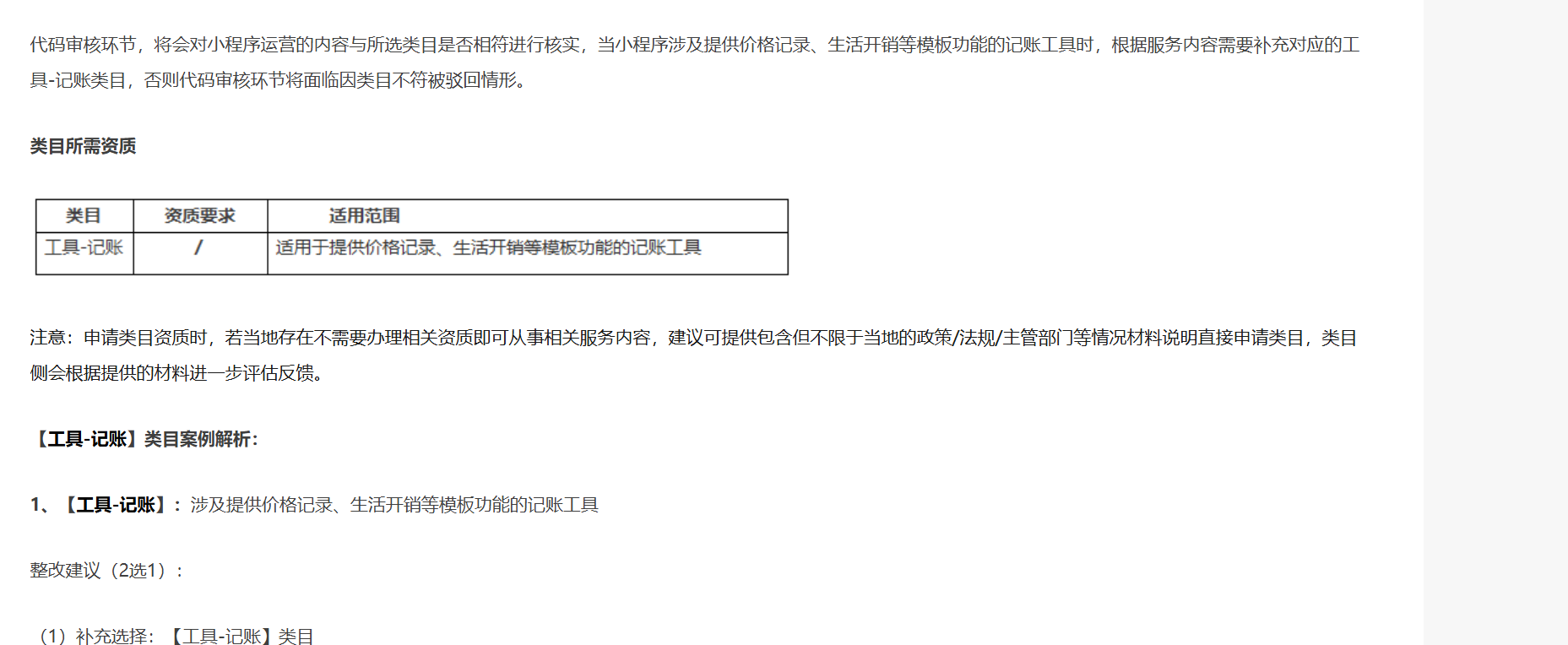 小程序类目资质、适用范围参考: