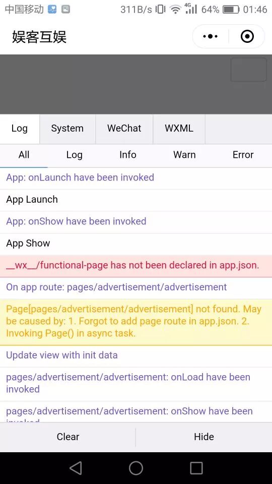 11月9号开始,上传发布的正式版、体验版都出现界面除了文字和样式全部空白的情况,调试发现低版本微信出现报错,报错内容如下:__wx__/functional-page has not been declared in app.json 最终将微信升级到最新版本(6.7.3),没有出现问题了,调试窗口出现正常日志:Register Page:wx://functional-page 。但不可能强求所有客户都升级啊,小程序的在线版本退回到之前上线的版本就没有这个问题了。代码方面,测试时用最简单的一个页面,也一样出不来图片,该页面请求了服务器的一张启动图,并进行5秒倒计时,仅此。