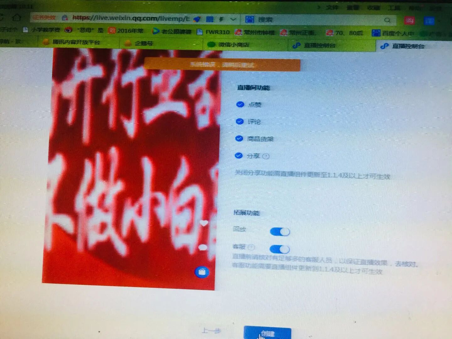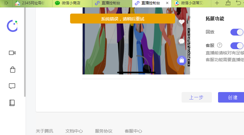 客服在吗 我的微信小商店设置直播 设置好之后提交出现系统错误 请稍后重试 每次提交都这样。