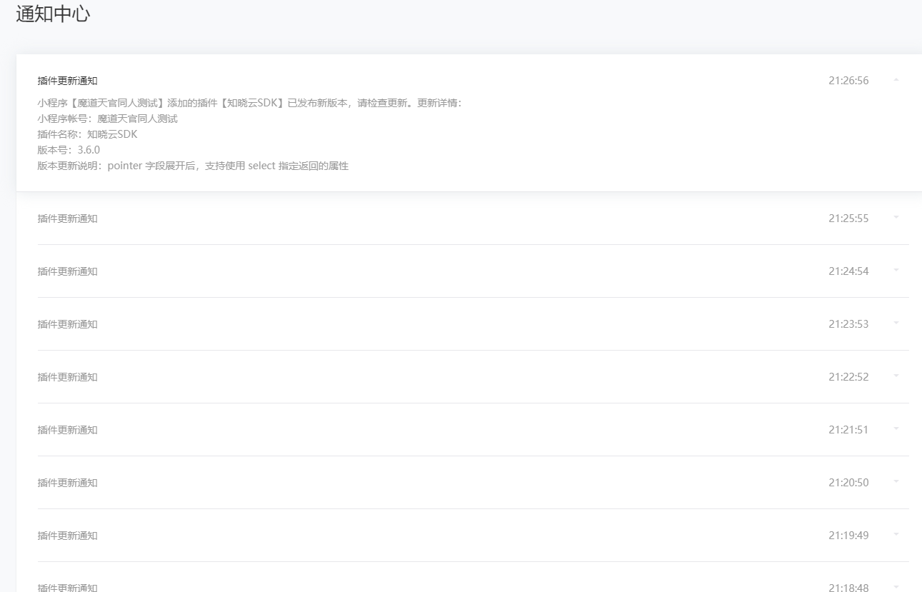 我的插件更新通知每隔一分钟就推送一次。是知晓云sdk插件的更新通知。麻烦取消!