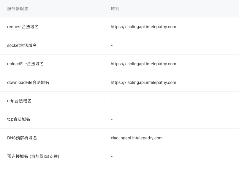 https://xiaolingapi.intelepathy.com 不在以下 request 合法域名列表中,请参考文档:https://developers.weixin.qq.com/miniprogram/dev/framework/ability/network.html(env: macOS,mp,1.06.2504010; lib: 3.7.8)