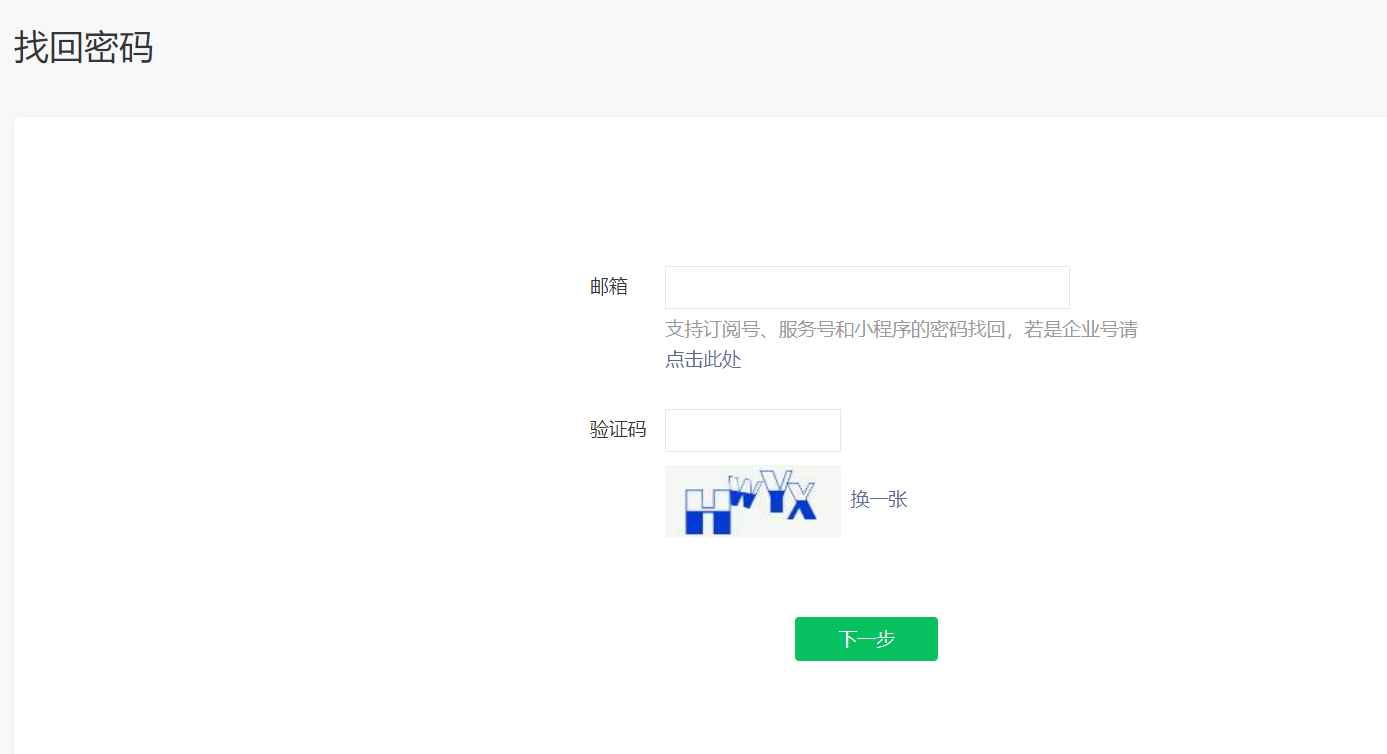 参见:https://mp.weixin.qq.com/cgi-bin/readtemplate?t=forgetpwd/index_tmpl&token=&lang=zh_CN