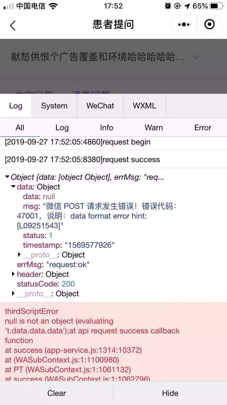 多条测试,已报错,只能单条了。这样对提问类的小程序很不友好啊。。。